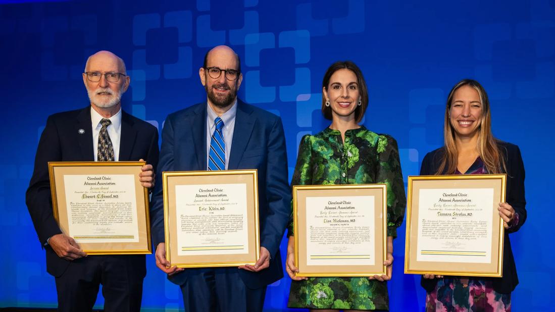 Edward C. Benzel, MD (Staff’99), a dedicated leader whose contributions have impacted countless lives, and Eric A. Klein, MD (U’86), a pioneer whose work has redefined his field, represent the depth of experience and innovation among our alumni. Joining them are two emerging leaders: Lisa Hickman, MD (OB/GYN’17, UG/PS’20), whose early career demonstrates a commitment to innovation and compassionate care, and Tamara Strohm, MD (N’17), whose research and mentorship are shaping the future. These four awardees exemplify the values and mission of Cleveland Clinic.