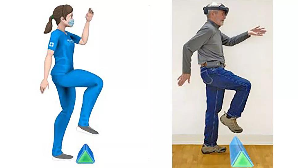 The intervention he refers to is the Dual-task Augmented Reality Treatment (DART) platform, which his Cleveland Clinic team developed to simultaneously deliver a validated DTT intervention while objectively measuring gait and cognitive performance during the training. Users of the DART platform wear a Microsoft HoloLens2 augmented reality headset while completing a series of tasks designed to engage the body and mind simultaneously. The headset projects digital objects in the ambulating user’s path while challenging them with cognitive tasks, and the user’s gait function and responses to the challenges are evaluated in real time.