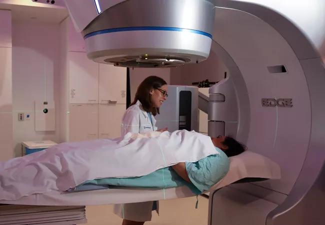 One method of delivering APBI is intensity-modulated radiation therapy (IMRT), a highly precise form of radiotherapy. Cleveland Clinic Cancer Center employs a team of highly trained specialists that utilize the Edge® (Varian Medical Systems Inc.) radiosurgical suite. The Edge is a state-of-the-art linear accelerator coupled with real-time motion management to ensure fast, precise delivery of treatment. The six-degree freedom couch, which accounts for motion in multiple directions, allows for accurate patient positioning while a CT scan attached to the machine allows accurate targeting of the area at risk.