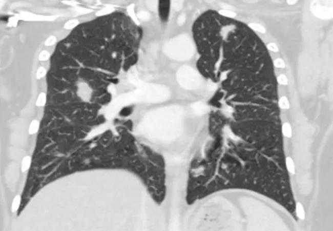Soon after, she developed bloody diarrhea. Abdominal computed tomography (CT) showed multiple lung nodules and diffuse adenopathy. A CT chest confirmed the nodules.