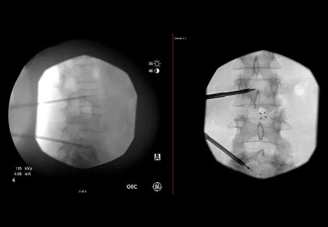 Dr. Neale referred her to Sherif Costandi, MD, an interventional pain management specialist, for more effective treatment options. Lytic lesions had infiltrated her spine at L3 and L5. Dr. Costandi treated her with cooled radiofrequency ablation therapy (cRFA) to the affected vertebrae coupled with cementoplasty to stabilize the area using the same bone access channel. “She had been in pain for about six months, and our best noninterventional efforts hadn’t worked,” says Dr. Costandi. “We were able to drop her pain from an 8 or 9 out of 10 to a zero and improve her quality of life dramatically.”