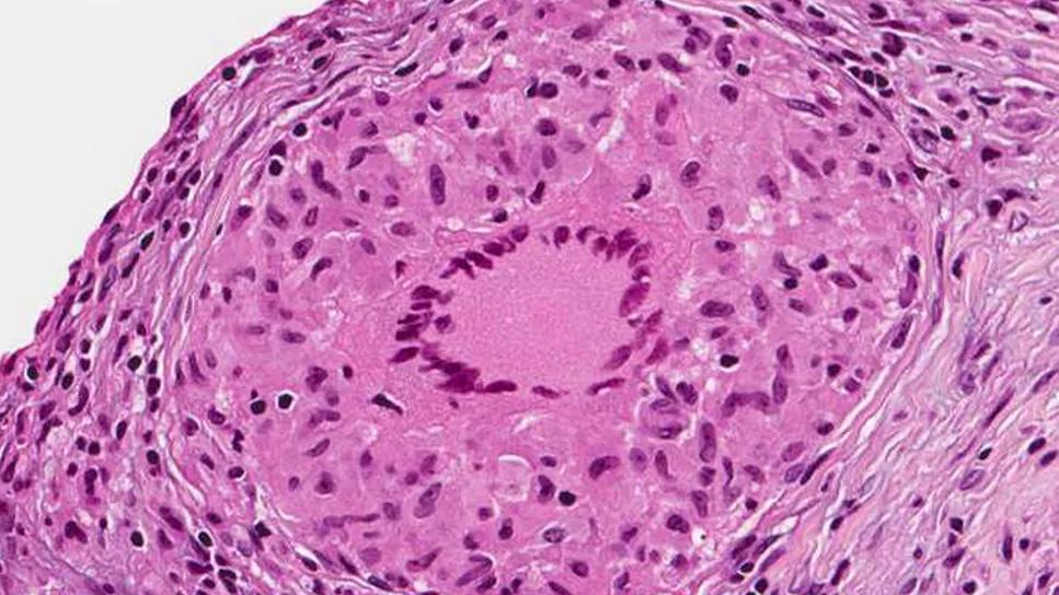 “GI tract involvement in sarcoidosis is exceedingly rare, with some studies showing an incidence of symptomatic GI sarcoidosis to be less than one percent,” says Dr. Yedimenko. “Any part of the GI tract can be affected, including the esophagus, stomach, small and large bowel. The diagnosis is difficult to make, as the presence of granulomatous inflammation does not necessarily mean sarcoidosis is responsible for the clinical manifestation, and common GI diseases must be excluded. Treatment is usually high-dose steroids and DMARDs [disease-modifying antirheumatic drugs] such as methotrexate, azathioprine and infliximab. In refractory cases, surgical intervention may be necessary with bowel obstruction, perforation or massive hemorrhage.”