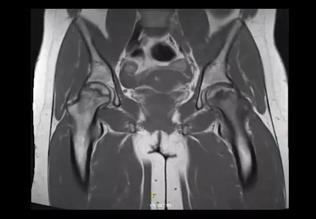 In the emergency department, her hemoglobin A1C was 7.5%, and she was diagnosed with diabetes. A bone densitometry test showed a Z -score of -1.7 in the spine which is less than expected for age. At follow up, she presented with bilateral groin and hip pain, but X-rays did not show obvious avascular necrosis. Bilateral magnetic resonance imaging of the hips showed left-sided acute-on-chronic avascular necrosis and chronic avascular necrosis of the right femoral head with a right-sided joint effusion. She eventually required bilateral hip replacements. Watch as Emily Littlejohn, DO, MPH, staff in the Department of Rheumatologic and Immunologic Diseases, discusses the case.