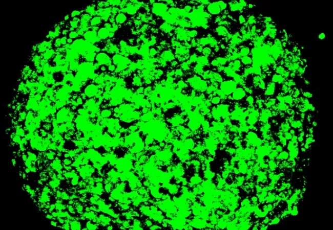 Feature image: Three-dimensional image of a mesothelioma spheroid.