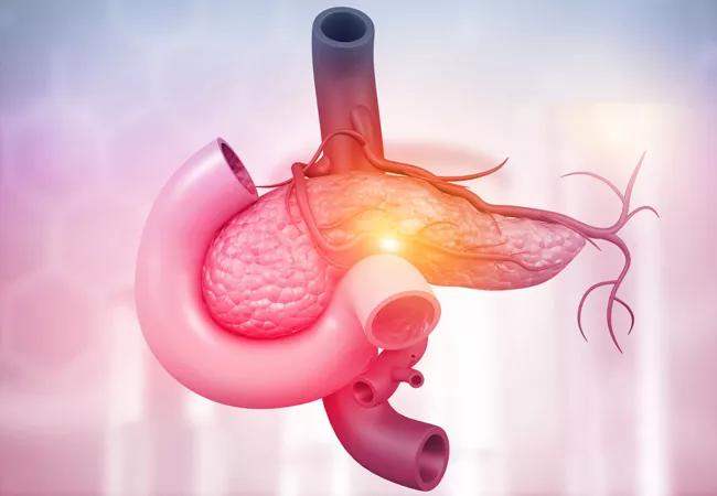 When a 58-year-old man notified his primary care provider that he was experiencing abdominal pain and was seeing what looked like oil in the toilet when he had a bowel movement, she ordered a CT scan. The patient was experiencing exocrine pancreatic insufficiency, resulting in oily stools due to fat malabsorption. The CT revealed a cyst on the pancreas and to further characterize it, his doctor referred him to gastroenterologist Amit Bhatt, MD, who followed up with an endoscopic ultrasound. This revealed main duct intraductal papillary mucinous neoplasm (IPMN), a benign pancreatic cyst. These cysts are a risk factor for developing into pancreatic cancer. While the diagnosis was frightening, when the disease is caught early, as in this case, it significantly improves the chances of a positive outcome.