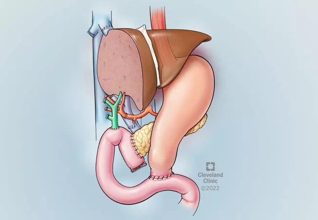 “We wanted to do all we could to minimize risk factors and set the patient up for success in the operating room,” said Robert Simon, MD, a general surgeon specializing in hepatopancreaticobiliary surgery with Cleveland Clinic. Dr. Simon was the surgeon scheduled to perform the whipple portion, and he scrubbed into the liver transplant to help plan ahead. For example, understanding details such as the limb length of the bowel made it possible for the [whipple] procedure to be performed without having to take down the bile duct anastomosis. Conversely, Dr. Koji Hashimoto, the liver transplant surgeon, came in to assist during the whipple procedure to identify and protect structures that were unique to the liver transplant.