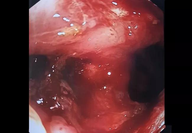 The patient recently celebrated her first anniversary with her new pouch. She was doing well and reported good continence. Pouchoscopy showed an unremarkable pouch.