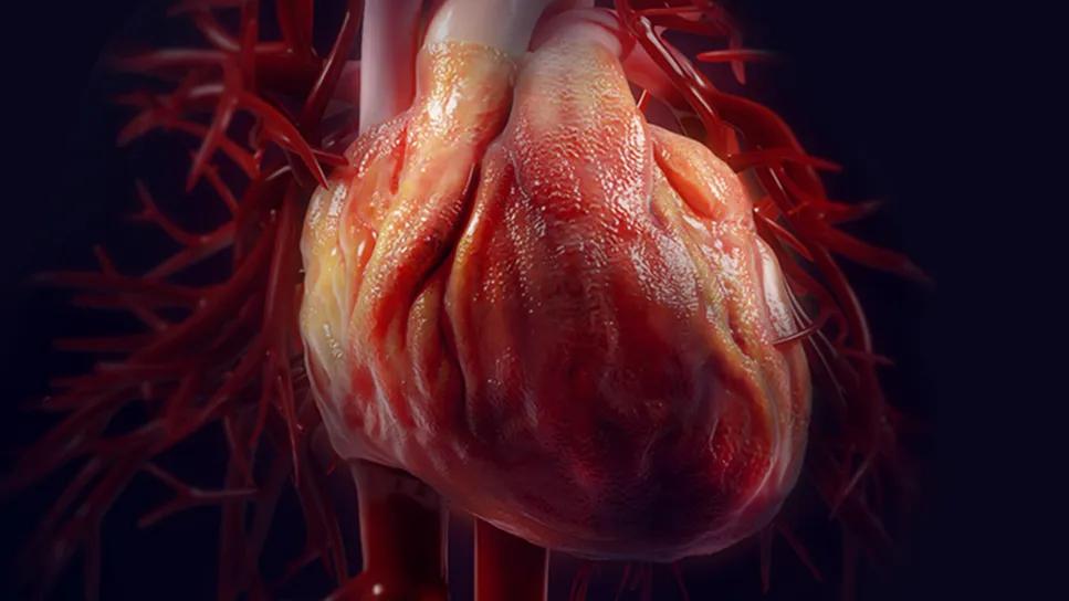 inflamed pericardium around human heart