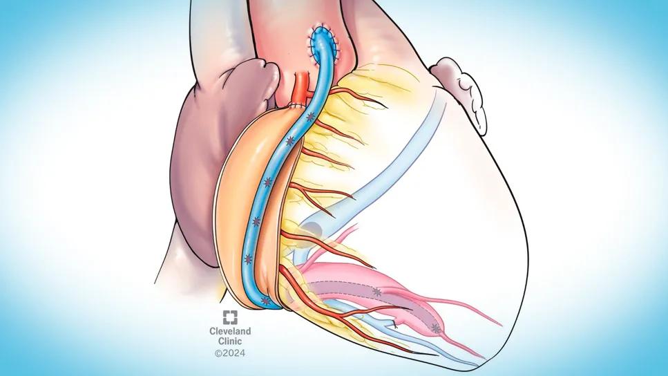 illustrated heart with a graft and visible blood vessels