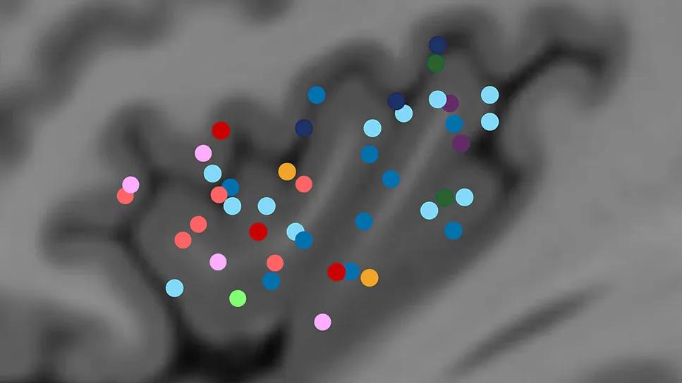 brain scan with colored dots over a dark gray region
