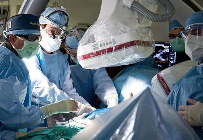 Like transcatheter mitral and aortic valve procedures, this first transcatheter tricuspid valve replacement was conducted in a hybrid operating room at Cleveland Clinic.