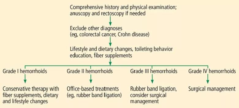 Here, we review the process for diagnosing and grading hemorrhoids, as well as for selecting the appropriate medical or surgical treatment based on the most recent clinical evidence.