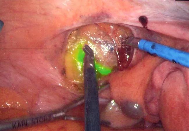A: We use an indocyanine green (ICG) dye that fluoresces so we can easily identify the lymphatic channels. This makes removing a sentinel lymph node very easy, avoiding complete lymph node dissection. By only removing the pertinent lymph nodes, we achieve a higher rate of metastatic cancer detection with fewer complications.