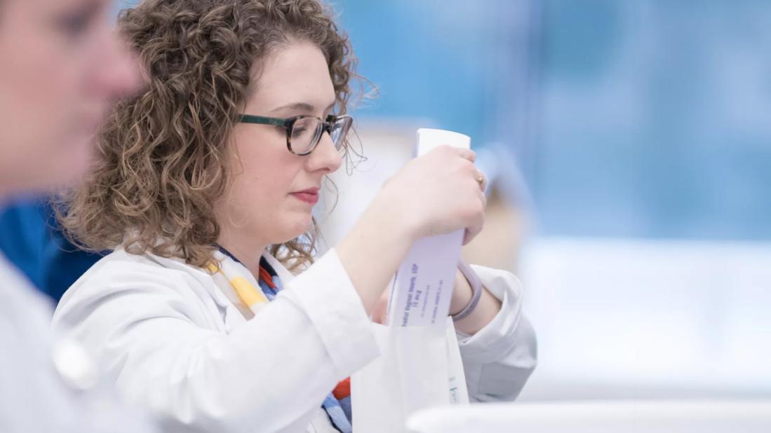 Pharmacist packing medication