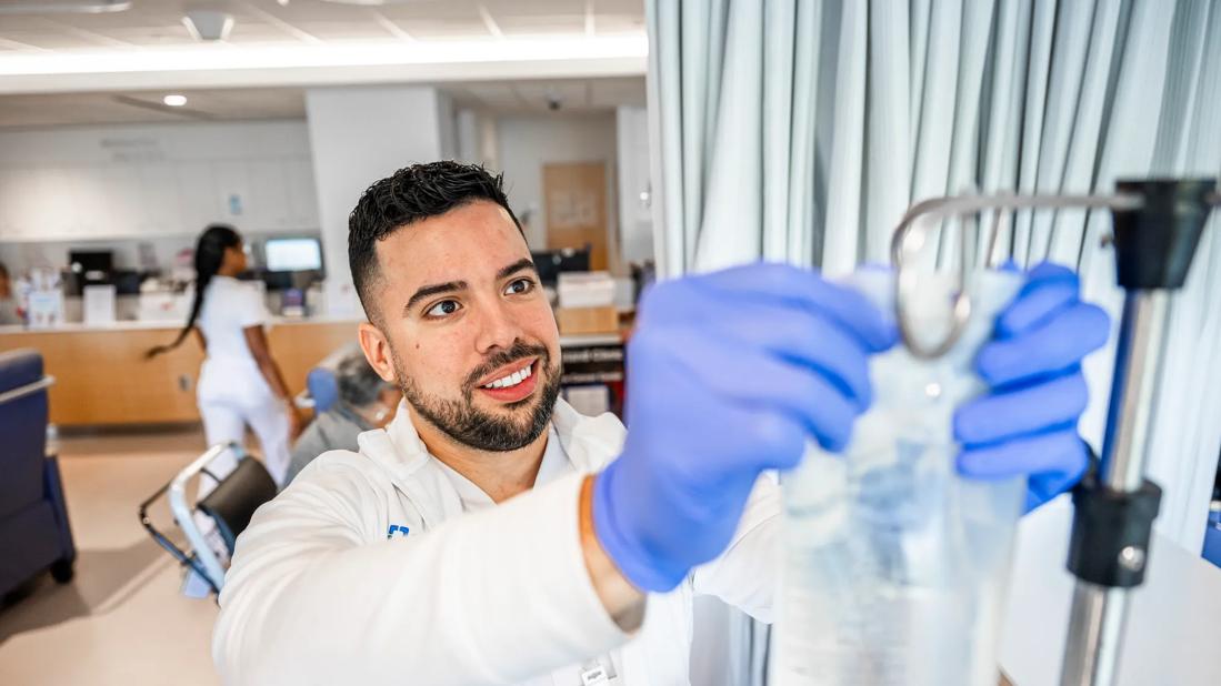 Nurse with IV bag