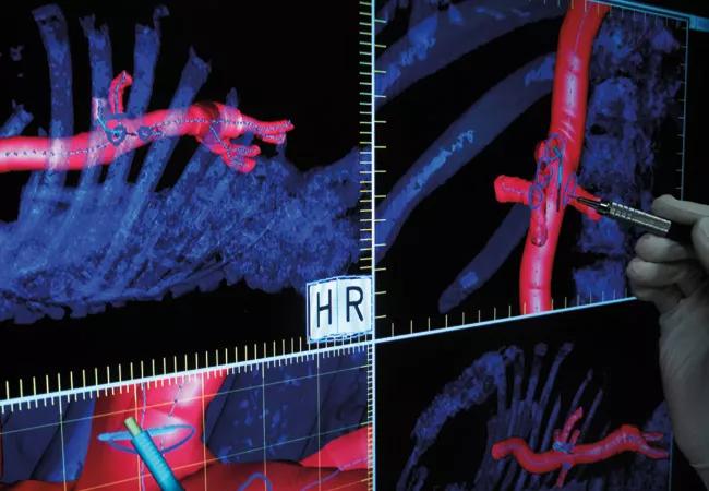 “Preclinical evaluation verified the ability to use this navigation system in manipulating through the aorta and its branches in the absence of radiation-inducing fluoroscopy,” says Cleveland Clinic vascular surgeon Matthew Eagleton, MD, who led the study. Noting that catheters and guidewires were easily visualized on the IOPS display, he predicted that the system “will be a game changer in the era of endovascular therapy.”