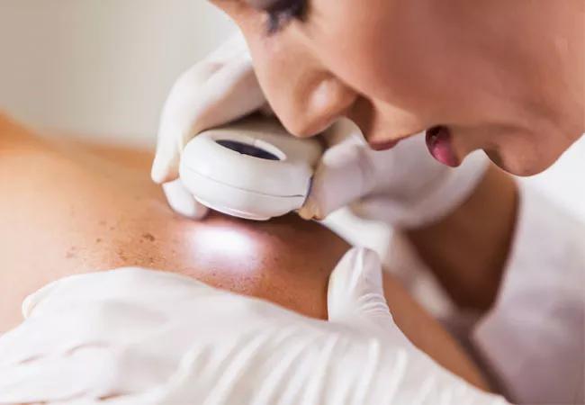 The patient had several smaller skin cancers removed over the past five years. In late 2022, she noticed a small nodule as well as several lesions on the back of her neck, and planned to discuss this with her dermatology physician’s assistant at Cleveland Clinic’s Richard E. Jacobs Health Center in Avon, OH at her regularly scheduled checkup.