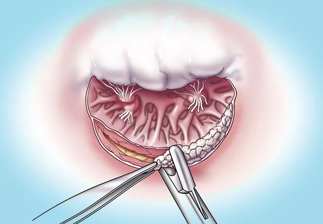 In the setting of mitral annular calcification (MAC) in a patient undergoing mitral valve replacement, addressing the calcium to achieve optimal sizing and seating of a prosthetic valve offers the best chance of favorable results. But special care must be taken to avoid releasing calcium fragments into the bloodstream or injury to the atrioventricular groove or a left circumflex coronary artery; these potential high-risk complications deter most surgeons from adequately addressing MAC.