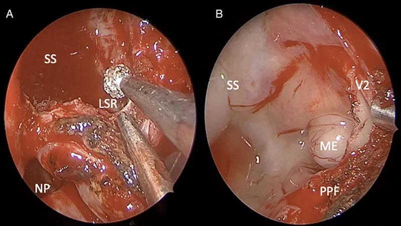 To overcome these shortcomings, skull base surgeons in Cleveland Clinic’s Head & Neck Institute have incorporated a different technique to treating patients with this rare condition. The simplified approach, referred to as the endoscopic modified transpterygoid approach (MTPA), allows the surgeon to access the lateral sphenoid sinus through the nasal cavity without having to dissect through (and possibly injure) the complex anatomy of the pterygopalatine fossa.