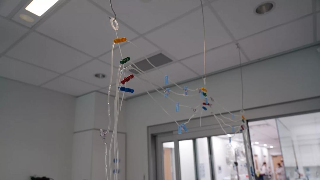In a typical critical care room, it can take up to three High-Lines to keep tubing off the floor, including one near the door where tubing meets pumps and one or two overhead or along a wall. The right number is based on the overall length of tubing and the distance from patient bed to critical care doors. Another adaptation was the addition of a ceiling pole to allow the use of ceiling hooks (purchased commercially) to secure the device in place.