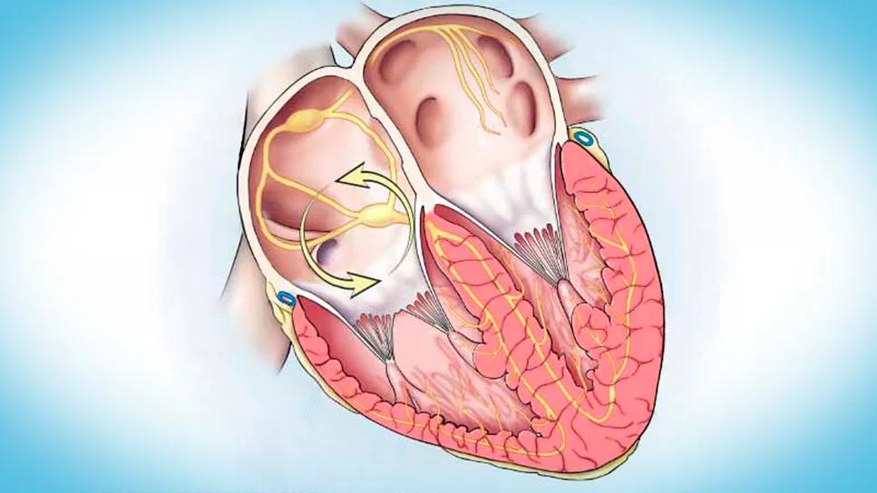 heart illustration with circular arrows in right upper chamber