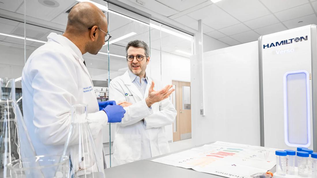 Dr. Liska speaking with researcher