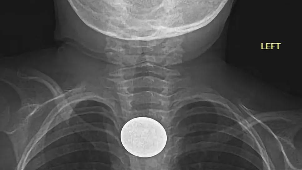 A few hours later, radiology contacted Dr. Appachi with a surprising finding: the X-ray revealed a coin was lodged in the child’s esophagus.
